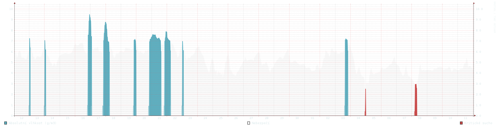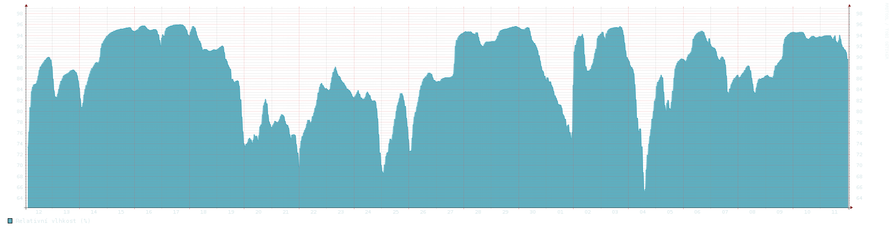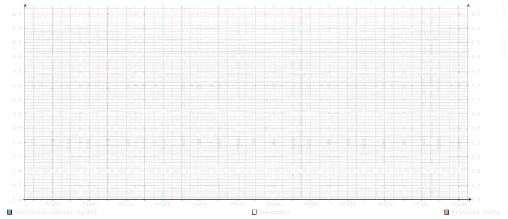 V posledních 24 hodinách vlhkost kolísala mezi 5.5 g/m3 a 6.1 g/m3