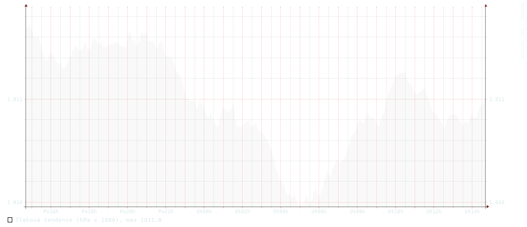 Posledních 24 hodin tlak kolísal od 1009.9 hPa (77%) do 1012 hPa (80%)