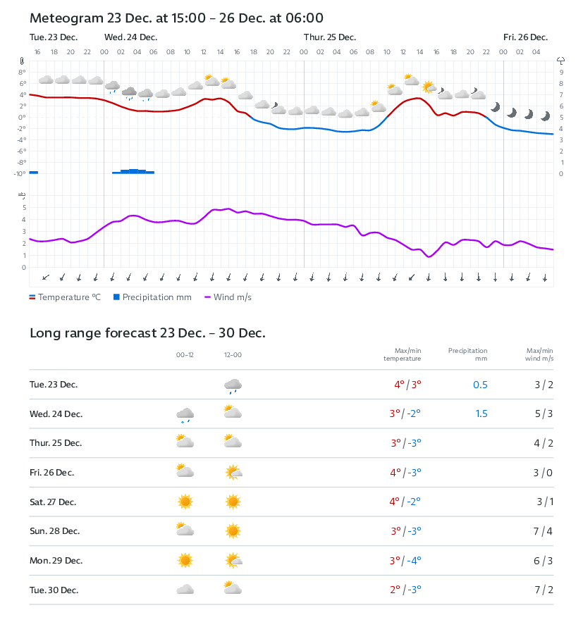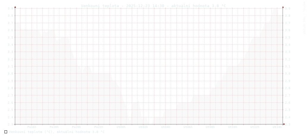 V posledních 24 hodinách teplota kolísala mezi 2.3 °C a 3.8 °C